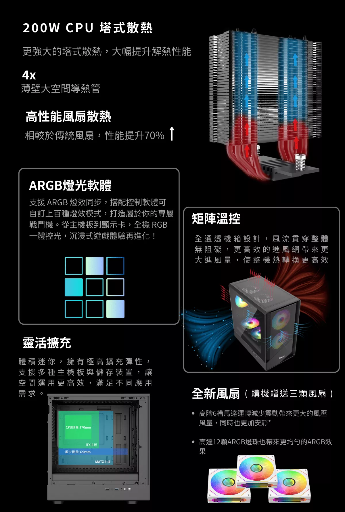 》CPU散熱 - ARGB四銅管高效能溫控散熱 (全新)