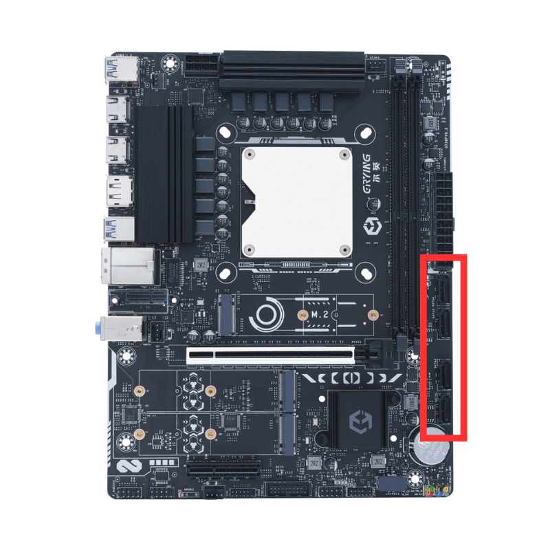 STEP 3.將SATA線材另一端連接至主機板的SATA線材接口(如下圖中紅框圈起部分)